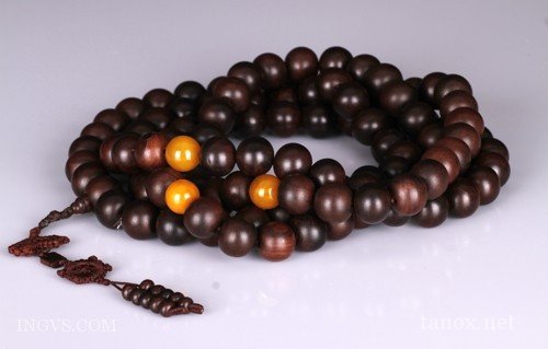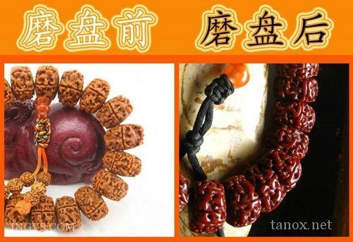 需要特别注意的是:木头珠子不要在任何时候接触较大的水分,如果珠子脏了可以用微微湿润的棉布擦拭几遍就好了,然后放置一段时间再盘玩,盘的时候珠子的所有区域都尽量盘到,特别是孔口,盘珠子最忌的就是急功近利,你只能慢慢来一个过程一个过程的来,随着珠子的变化也可以同时得到一种精神的愉悦。