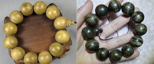 其实沉香佛珠手串不需要刻意去盘玩,虽然包浆形成后会让手串品相更好,但是包浆层可能会堵塞住手串表面的气孔,让香味难以散发出来,从而导致香味减弱甚至完全没有香味。只有极少的一些油脂多、品质高的沉香才能在形成包浆的同时还有香味散发出来,所以沉香佛珠手串还是不需要去刻意盘玩,随意佩戴即可!