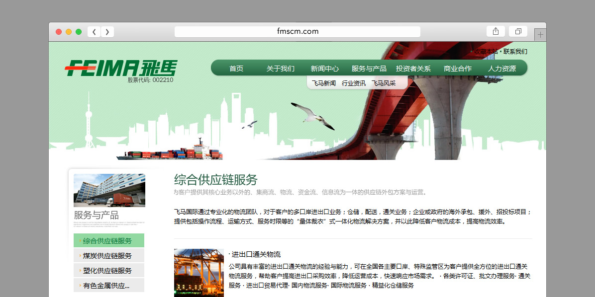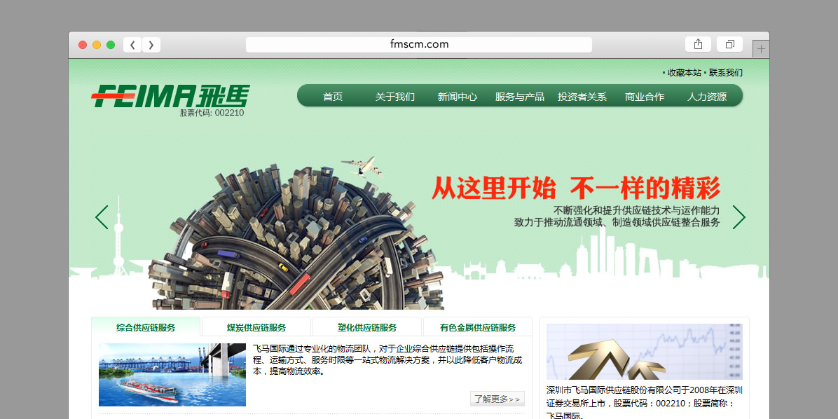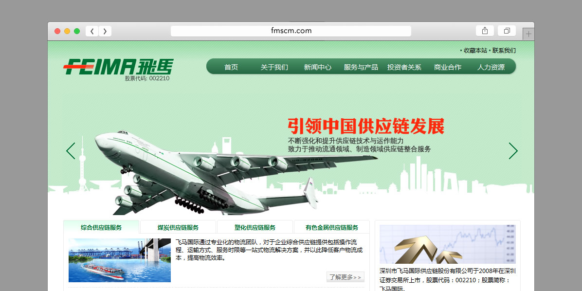 深圳市飞马国际供应链股份有限公司成立于1998年。公司主营业务为供应链管理服务,包括综合供应链服务、煤炭供应链服务、塑化供应链服务和有色金属供应链服务。多年来公司通过不断强化和提升供应链技术与运作能力,为客户提供其核心业务以外的集商流、物流、资金流、信息流为一体的供应链外包方案与运营。并依托完善的网络布局、独特的供应链服务模式、优质的服务品质、功能强大的信息系统以及勤勉敬业的专业团队和不断创新的供应链产品,赢得了国内外客户的广泛赞誉。